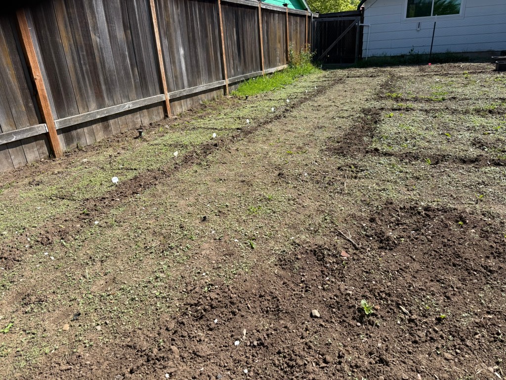 On the left side is a cover crop of clover that I definitely did not plant. That is supposed to be a row of greens, but unfortunately nothing has grown enough for me to distinguish between actual food and the three-leaf version of a leprechaun’s dream.